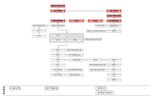 出口地銀行:信用證通知書,交單,結(jie)匯,代款,還(huan)貸 供應(ying)商(shang):起草內銷合同,收貨