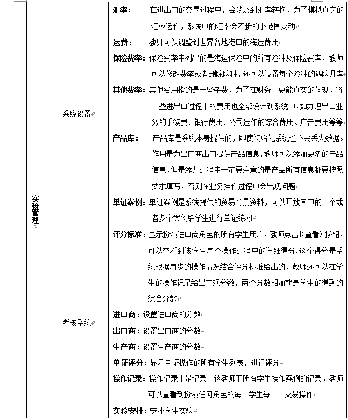 8、教師(shi)為參加實(shi)(shi)(shi)習(xi)的(de)(de)學(xue)生(sheng)(sheng)分配角(jiao)色,設定實(shi)(shi)(shi)習(xi)評(ping)分標準、實(shi)(shi)(shi)時監控(kong)學(xue)生(sheng)(sheng)的(de)(de)操(cao)作,并(bing)且對于模(mo)擬貿易中發(fa)(fa)(fa)生(sheng)(sheng)的(de)(de)糾紛進行仲裁,最終利(li)用評(ping)分系統對學(xue)生(sheng)(sheng)的(de)(de)實(shi)(shi)(shi)習(xi)成果給予(yu)評(ping)定,教師(shi)通過在(zai)網(wang)站發(fa)(fa)(fa)布新聞(wen)、調整商品成本和價格、調整匯率(lv)、業務費用、海運費、保險費率(lv)及突發(fa)(fa)(fa)事件的(de)(de)發(fa)(fa)(fa)生(sheng)(sheng)概率(lv)等方式(shi)對國際貿易環境(jing)實(shi)(shi)(shi)施宏觀調控(kong),讓學(xue)生(sheng)(sheng)在(zai)實(shi)(shi)(shi)習(xi)中充分發(fa)(fa)(fa)揮主(zhu)觀能(neng)動性