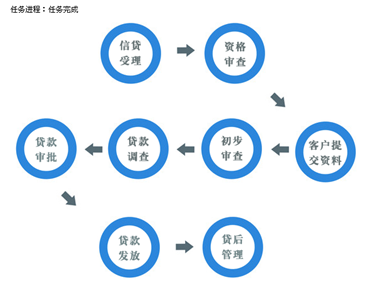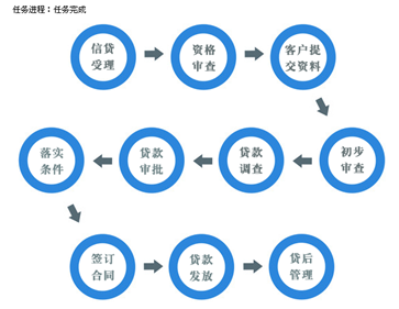 實訓主體分五類流程(cheng):短期貸(dai)(dai)(dai)款(kuan)、長期貸(dai)(dai)(dai)款(kuan)、票(piao)據(ju)貼現(xian)、個人住(zhu)房抵押貸(dai)(dai)(dai)款(kuan)、個人汽(qi)車消費貸(dai)(dai)(dai)款(kuan)。提供靈活的(de)業務流程(cheng)控制(zhi),包(bao)括信貸(dai)(dai)(dai)受(shou)理、資(zi)格審查(cha)、貸(dai)(dai)(dai)款(kuan)調(diao)查(cha)、貸(dai)(dai)(dai)款(kuan)審批、落(luo)實條件(jian)、簽(qian)訂合同、貸(dai)(dai)(dai)款(kuan)發放、貸(dai)(dai)(dai)后管(guan)理等步驟(zou)。