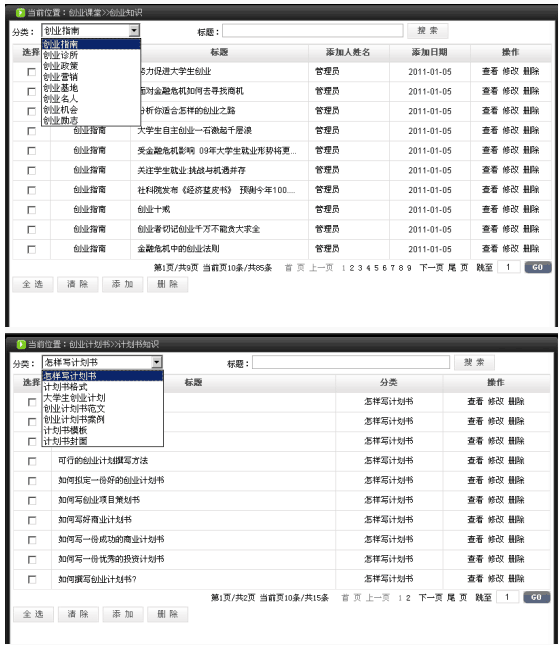 2、包(bao)含(han)創(chuang)(chuang)業(ye)理論知(zhi)識(shi)的學習和創(chuang)(chuang)業(ye)實戰(zhan)訓練。創(chuang)(chuang)業(ye)理論知(zhi)識(shi)包(bao)括(kuo)測評系(xi)統(tong)、創(chuang)(chuang)業(ye)課堂、創(chuang)(chuang)業(ye)講談(tan)、創(chuang)(chuang)業(ye)命題、創(chuang)(chuang)業(ye)計劃書、法規知(zhi)識(shi)、網上創(chuang)(chuang)業(ye)、創(chuang)(chuang)業(ye)準備、創(chuang)(chuang)業(ye)論壇。創(chuang)(chuang)業(ye)實戰(zhan)訓練包(bao)含(han)選擇行業(ye)、注冊(ce)公司、人員招聘、產品(pin)戰(zhan)略(lve)策劃、產品(pin)生(sheng)產、渠道(dao)銷(xiao)售、促(cu)銷(xiao)、備貨運(yun)送(song)等(deng)內(nei)容。