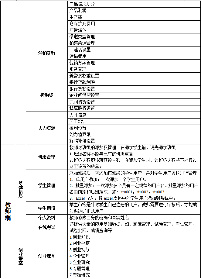 關鍵(jian)詞:大學(xue)生(sheng)創(chuang)業模擬實(shi)訓實(shi)戰教(jiao)學(xue)平臺 大學(xue)生(sheng)創(chuang)業實(shi)訓教(jiao)學(xue)軟件(jian) 大學(xue)生(sheng)創(chuang)業實(shi)訓教(jiao)學(xue)系統 大學(xue)生(sheng)創(chuang)業實(shi)訓室解決方案