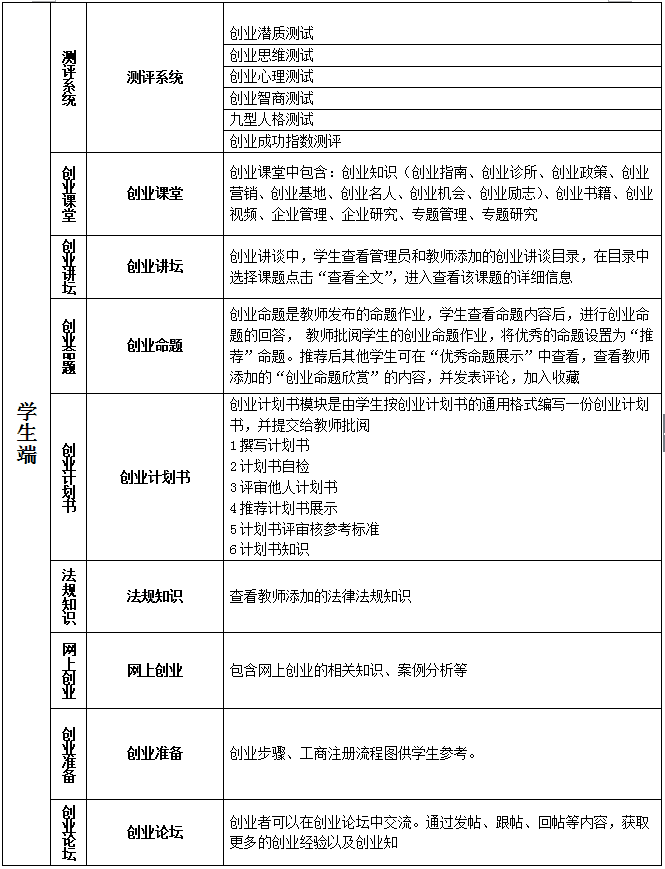 用(yong)戶(hu)對(dui)象(xiang):本教學軟件(jian)適(shi)用(yong)于各專(zhuan)業大學生創業的模擬實訓。