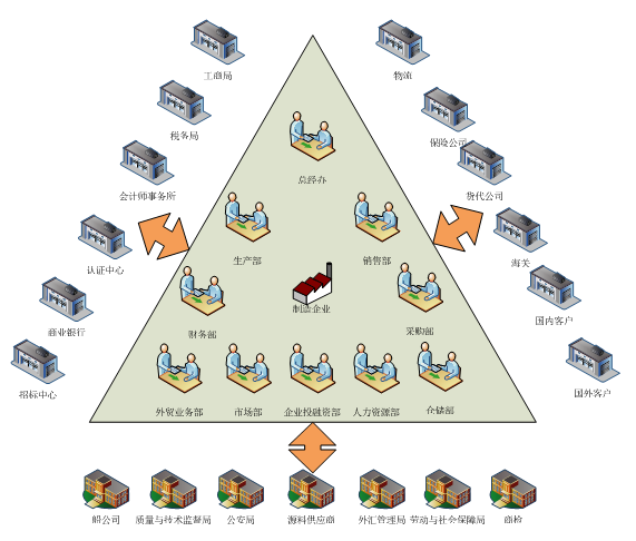 核心(xin)系統指的是制造企業(ye)內部(bu)(bu)經營和管理(li)系統,由總(zong)經理(li)辦公室、銷售部(bu)(bu)、生產部(bu)(bu)、采購部(bu)(bu)、倉儲部(bu)(bu)、外貿部(bu)(bu)、市場部(bu)(bu)、財務部(bu)(bu)、人才(cai)資源部(bu)(bu)、企業(ye)投資融資部(bu)(bu)等(deng)部(bu)(bu)門構成,下設(she)21個崗(gang)位(wei),各(ge)施(shi)其職,來完成企業(ye)的運作。